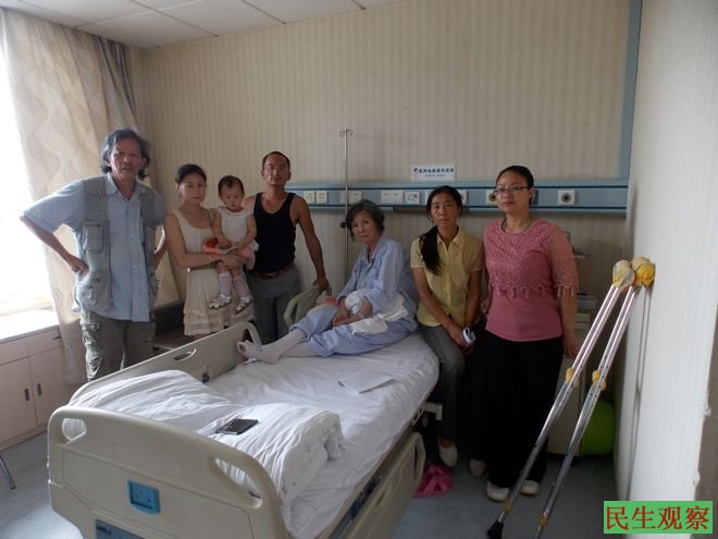 民生观察工作室2014-8-17消息:今天中午在北京的维权人、诗人王藏携全家,及王素娥丶王金玲一道来到北京医院住院部妇科十层1010病房,看望了艺术家严正学患病的妻子朱春柳。