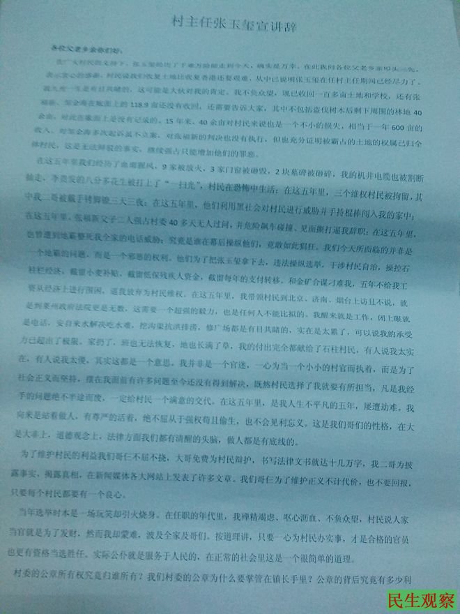 四.政府携带打印机既可随时打印选票,又可随时作弊。尽管镇政府剥夺张玉玺的政治权利,但村民仍然选张玉玺为村主任候选人,在石柱栏村已超半数,为此对石东村选票不公开,尤其两生产队重选,开始的选票烧掉,是毁灭证据,舞弊行为。