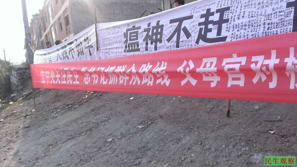 民生观察工作室2014年11月17日消息:从昨天开始,湖北省咸宁市通山县九宫山镇三百多村民打着各种标语,围堵当地的一家名为现代牧业通山公司的企业。到今天,围堵抗议行动还在继续,但政府到现在仍没什么说法,只是一味“劝离”。
