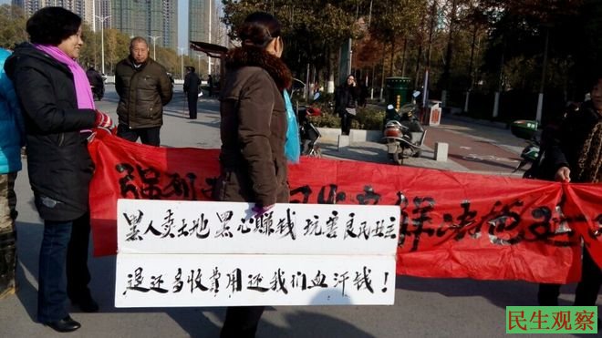 今天是星期一也是巡视组来潜江正式接待日,按公布的时间地点群众都来到了市政府信访办想见巡视组,人数有四、五百人。今天还是没有见到巡视组,众多访民情绪激动抱怨,随后来到市政府大门拉起了横幅标语。今天去找巡视组的大部分反映的是土地、强拆问题,更多的是三峡移民问题,三峡移民主要是房子豆腐渣工程,这些实实在在的农民远离自己祖祖辈辈的住地,不远千里迢迢来到湖北潜江,却住着豆腐渣工程的房子,他们为了三峡付出了一切。