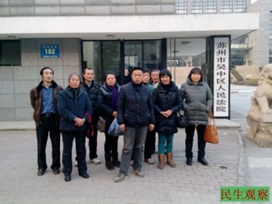 民生观察工作室2014-12-24消息:今天下午(12月24日)13:30分,江苏省苏州市访民徐桂生起诉苏州市吴中区木渎镇政府信息不公开案,在苏州市吴中区法院开庭,有多位维权人士到场参与旁听被拒。