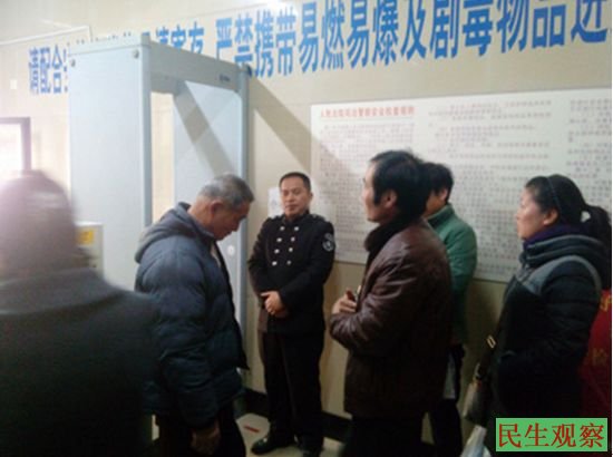 下午13时许,当徐桂生带着20多名旁听维权人来到了苏州市吴中区人民法院,并准备进入安检室安检时,奇怪的一幕发生了:安检人员对徐桂生等人说,刚接到法院领导(朱魏院长)的通知,禁止五人以上的公民入场旁听此案。随即,安检人员就关闭了安检室的大门,开始阻止十余位公民进场旁听,并且连原告徐桂生本人也被关在了法院安检室之外。