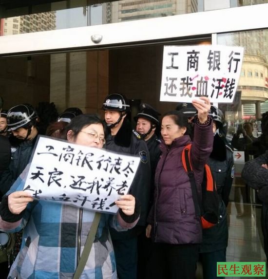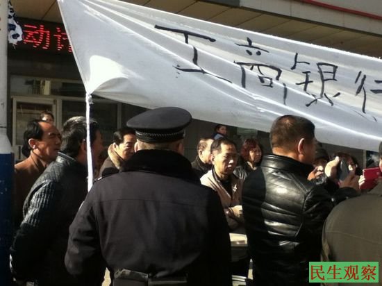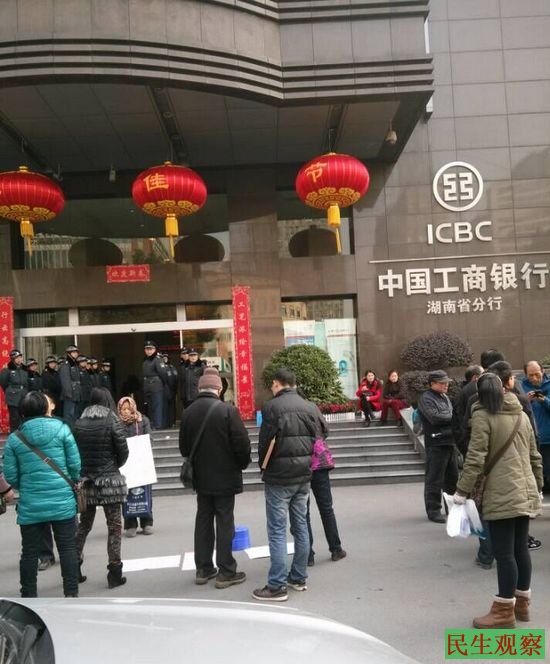 其中,湖南的20多名银行买断工龄人,是在今早的9时许相约来到湖南省分行进行维权的。他们到达湖南省分行总部后,上午半天一直没有任何人出来接待他们。下午,他们就开始站到了营业厅的大门口,这时有很多警察赶到,但是没有发生冲突,只有几十个保安把银行的大门死死把守住,不让维权者进入。对此,这些维权人士表示:今天的维权行动没有任何结果,他们明天会继续进行。