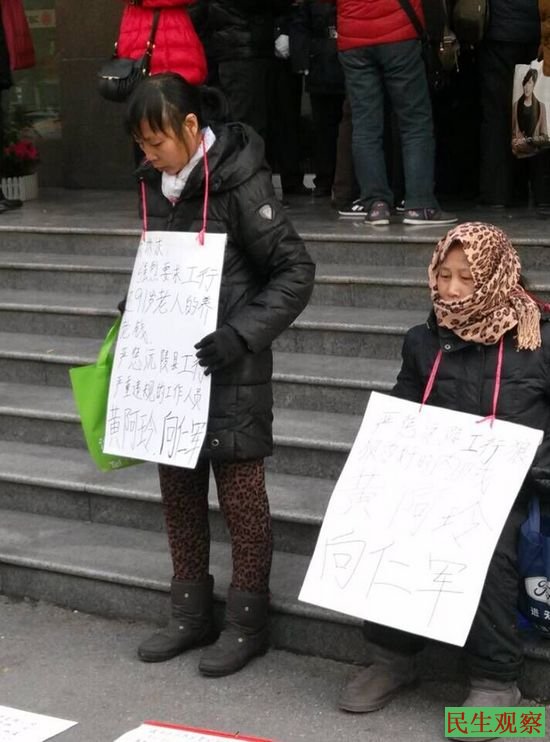 此外,昨天还有多名湖北工行买断工龄人士到达北京维权。其中,潜江工行买断工龄人潘向荣,她是一名癌症患者。由于其身体不佳,她就在潜江工行买断工龄人黄行芝的照顾陪同下,于昨日下午艰难的到达北京市的,但是,就在她们刚到北京下火车路过中南海时,就被警察发现她们是访民,随后就将他们抓进了北京府右街派出所,之后再被转入“马家楼分流中心”关押。据悉,潘向荣患癌后生活艰难,后续还需要药物维持,而她却被非法买断工龄,没有了收入。黄行芝女士,则因为她长期维权而导致其家庭破裂(离婚)。据伍丽娟称,她们三人都是在潜江银行工作十年以上的员工(黄行芝21年、伍丽娟18年、潘向荣12年),但是在早年的买断工龄潮时期,她们却被银行与腐败勾结,在他们直到今天都没有签字认可的情况下,非法将他们买断工龄,并且她们多年维权,银行和政府却不给她们解决问题,反而只是一味的打压。对此,她们表示:要过年了,她们没有钱过年,就只能去北京首都的王府井要饭去了!最新消息:今天潘向荣和黄行芝已被湖北驻京办人员接出马家楼,控制在某房间内。