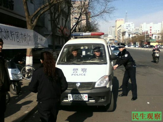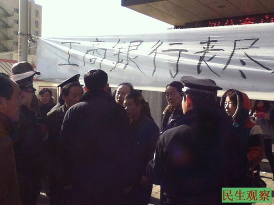 民生观察工作室2015/2/11消息:今日上午,内蒙古巴彦淖尔巿工商银行进百名断友(被买断工龄)在该市支行外拉横幅抗议,要求履行应该给予的医疗保险等福利待遇,遭到工行报警。110出警来后,强行要求撤掉断友们的声讨横幅,断友们就给警察讲道理。经过警察电话请示后,他们撤离了维权现场,没有在危难断友们继续抗议,然后等到下班时间,工行也未进行任何对话处理。