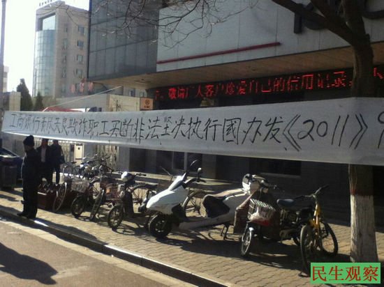 内蒙古巴彦淖尔巿工商银行近百断友拉横幅维权