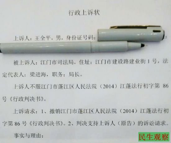 王全平律师起诉江门司法局案二审开庭 |