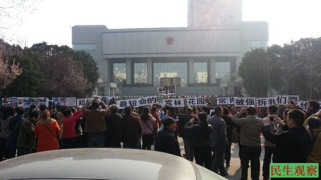 据在现场的天津维权人给本工作室发来的消息 ,今天上午有约三百维权民众赶到了许昌中级人民法院前,围观、声援贾灵敏,贾灵敏的代理律师朱孝顶也到了现场,以下是法院外的现场民众。
