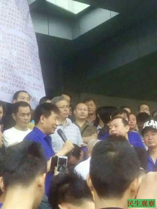 图为:职工表达诉求现场