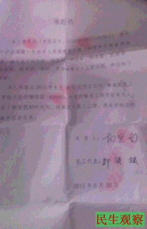 该款项涉及他们九名木工,近期大家找杨思均要工资,杨思均于6月30日写了一份承诺书,承诺7月2日前一定还钱。可今天7月3日了,九名农民工不仅未如期收到工资,连杨思均也找不着了,打他电话也找不到他。九人非常着急,他们现在在当地每天生活费都得花销不少。