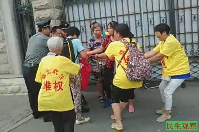 武汉访民们的这一行动遭到北京治安总队保安的阻止、撕打。