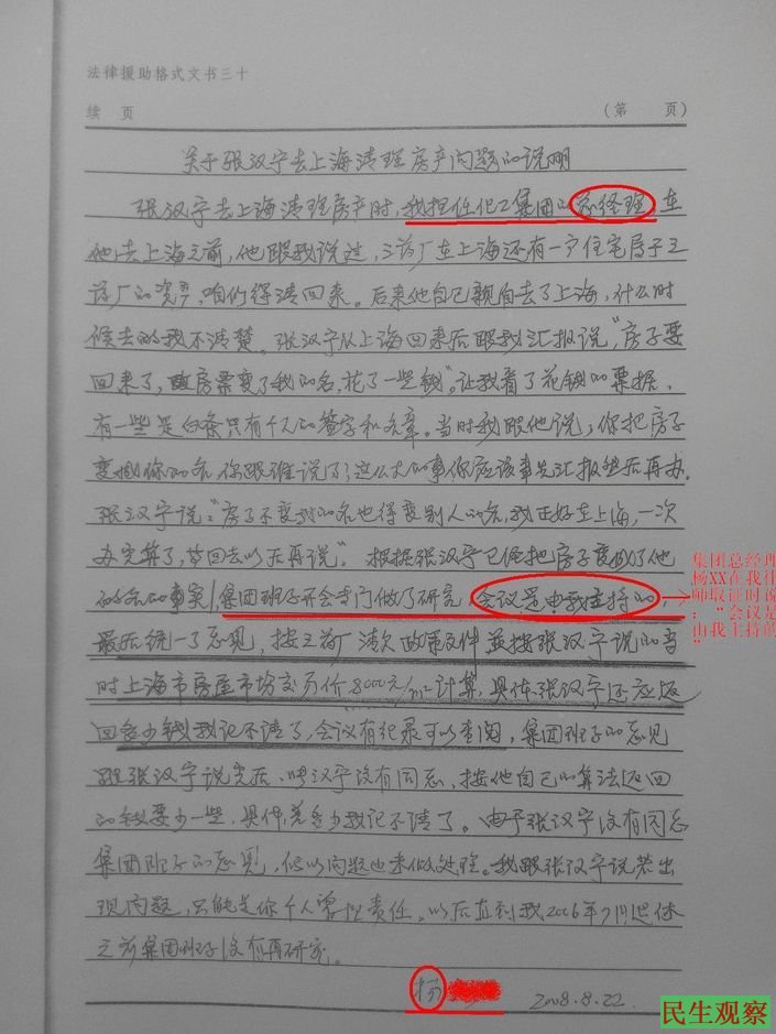 民生观察工作室2015年9月17日消息:今天,家住辽宁本溪冤民张汉宁向本工作室反映,他原是本溪第三制药厂(留守)书记兼厂长,隶属本溪化工集团, 04年经化工集团领导同意,他到上海清欠回一户房子并暂时变更其名下,后根据集团决定,于07年9月前将房款全部交清。08年3月19日本溪市明山区检察院经济二科科长霍春雷,断然否定企业的规章制度和自主权,否定化工集团的决定,认为他的行为属于职务侵占,对他进行立案侦査,随后对他进行一系列的打击报复。时至今日,问题仍未得到解决,相关部门互相推诿踢皮球。