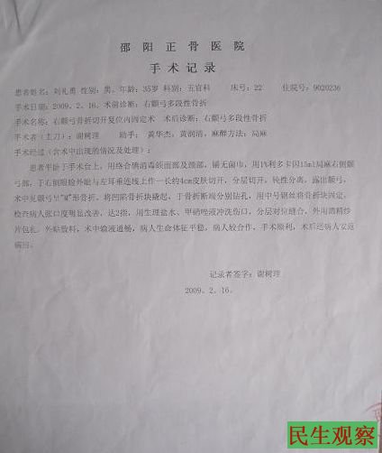 就因为罗亚南是新邵县纪委监察局长的堂侄子,违法犯罪的罗亚南等人就这样被新邵县整个政法系统包庇。刘礼勇二次头面部开刀做手术,装钢板,取钢板,留下严重后遗症,他花光了赔偿的贰万贰仟元,还倒贴数万多元,落得倾家荡产。