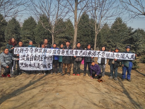 民生观察工作室2016/3/2消息:明天,就是全国两会召开的日子,许多具有不同国籍的与会代表也以陆续到京准备参会。全国在京访民为了表达爱国之情,支持习总书记依宪执政,实现民主未来,以张打横幅的方式,反对外国势力进入中国两会搅局,干涉别国内政。