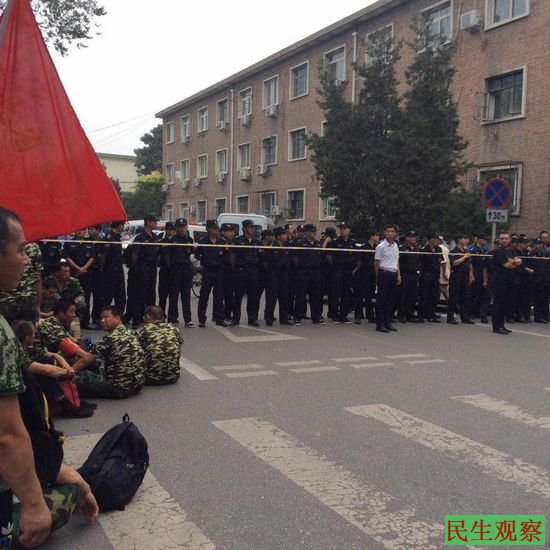 民生观察工作室2016/7/18消息:今天来自全国各地的5000名退伍老兵聚集在中央军委信访室集体维权请愿。许多警察和特警围堵在周围要强行清场,在老兵们的强烈抗议下一直坚持到晚上7点才被陆续押上车送到北京市通州区的一个救助站。