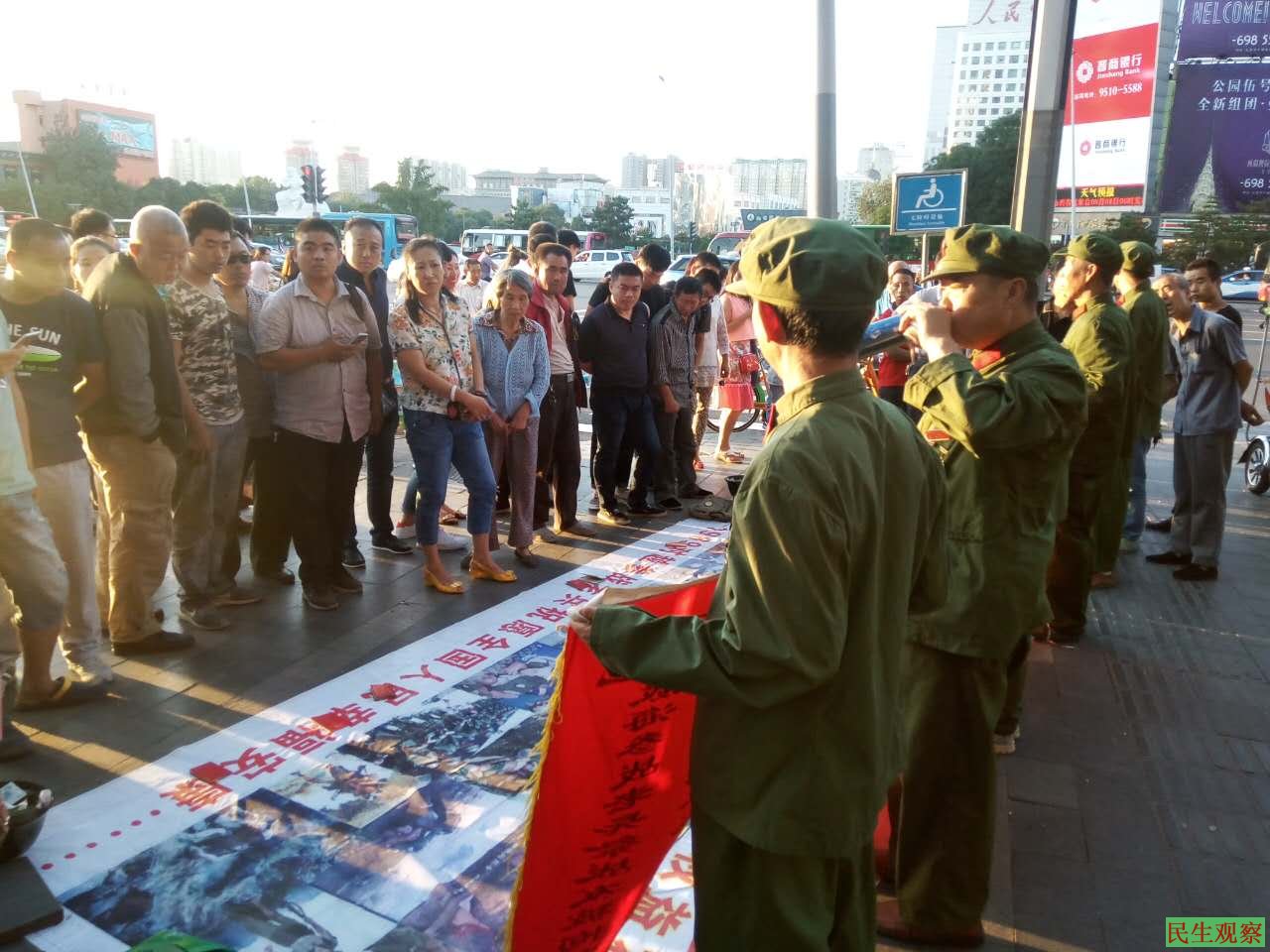 民生观察工作室2016/9/5消息,今天上午,杨岁全等6名越战老兵在山西省太原市迎泽区宣传红色历史和自己为国立功,却被政府克扣优抚待遇时被几十名城管包围,抢夺其物品,随后几名老兵被押送到迎泽区柳巷派出所。