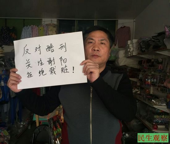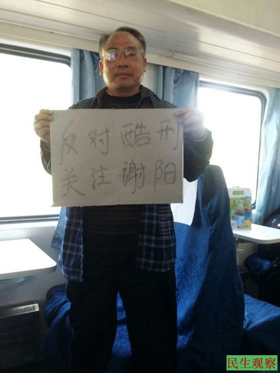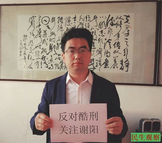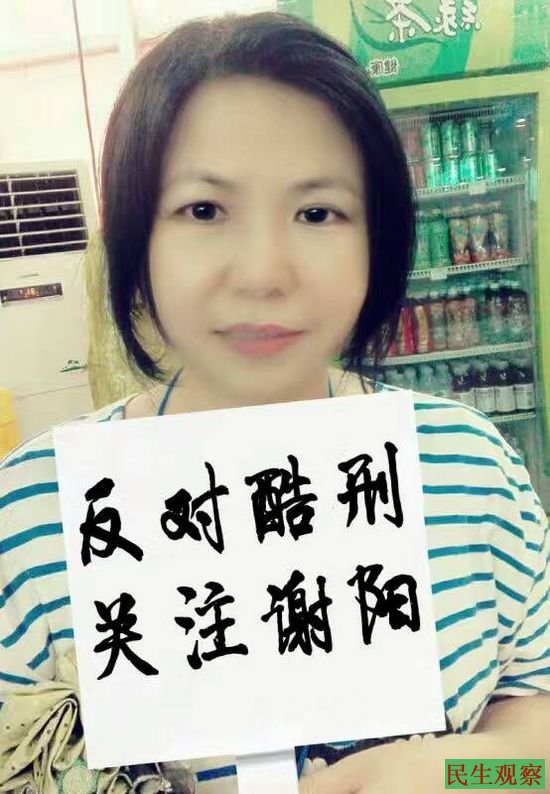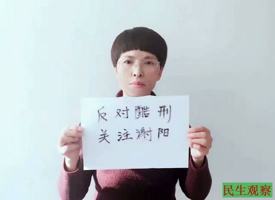网友发起一人一照”反对酷刑支持谢阳”活动!