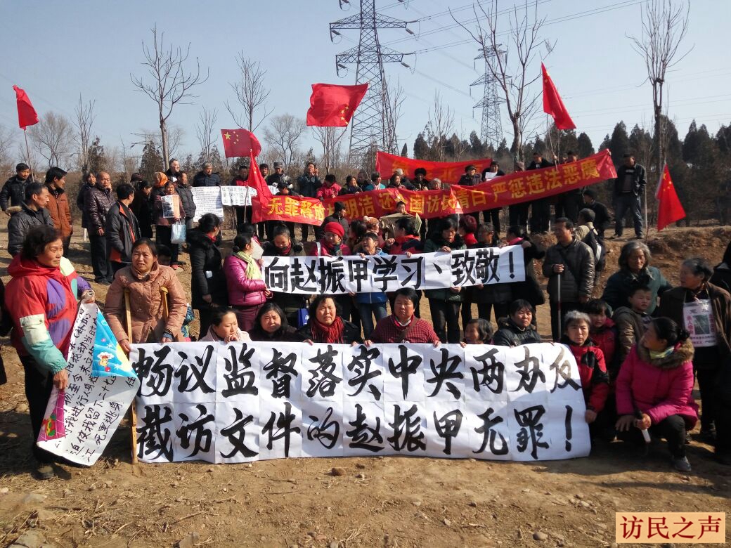 辽宁赵振甲发起反截访活动被拘 访民打横幅声援