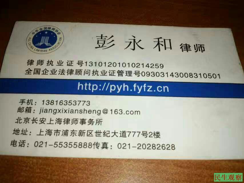 【民生观察工作室2017年5月5日上海消息】近日,上海律师彭永和发布公开声明退出律师协会,称这种协会毫无意义,每年交的会员费莫名其妙不知去向。