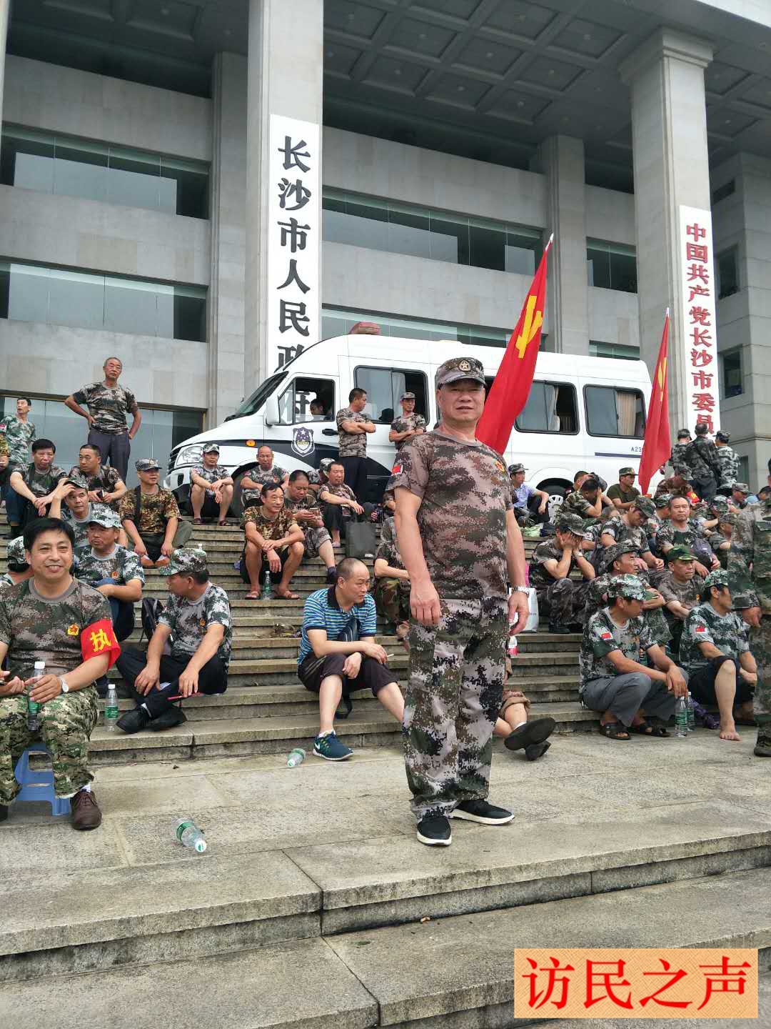 [访民之声2017/8/30消息] 今天,湖南长沙市数十名军转志愿兵(士官),聚集在长沙市政府门前,求见中央督察组反映诉求,获市政府秘书长接谈。