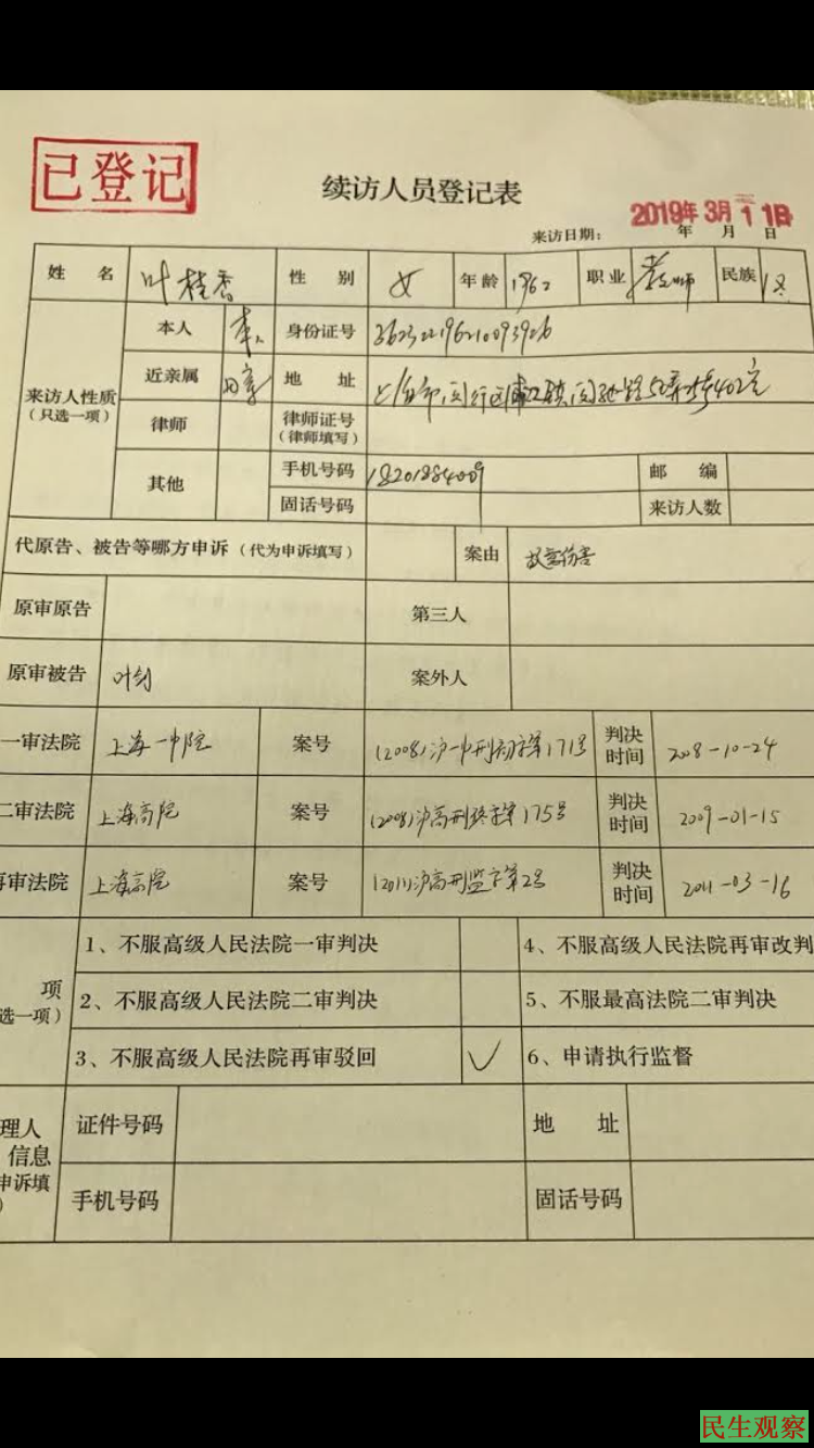 叶桂香第八次上访最高法遭推诿 |
