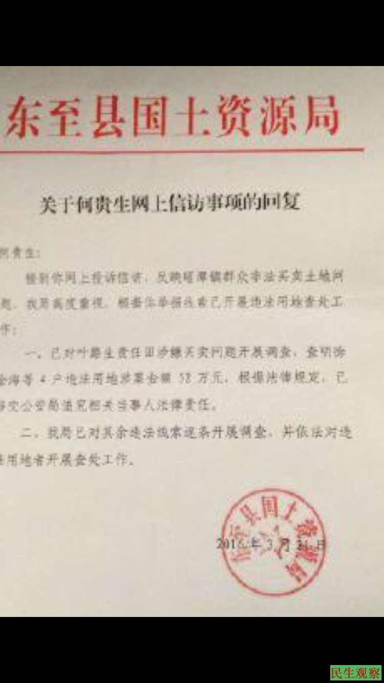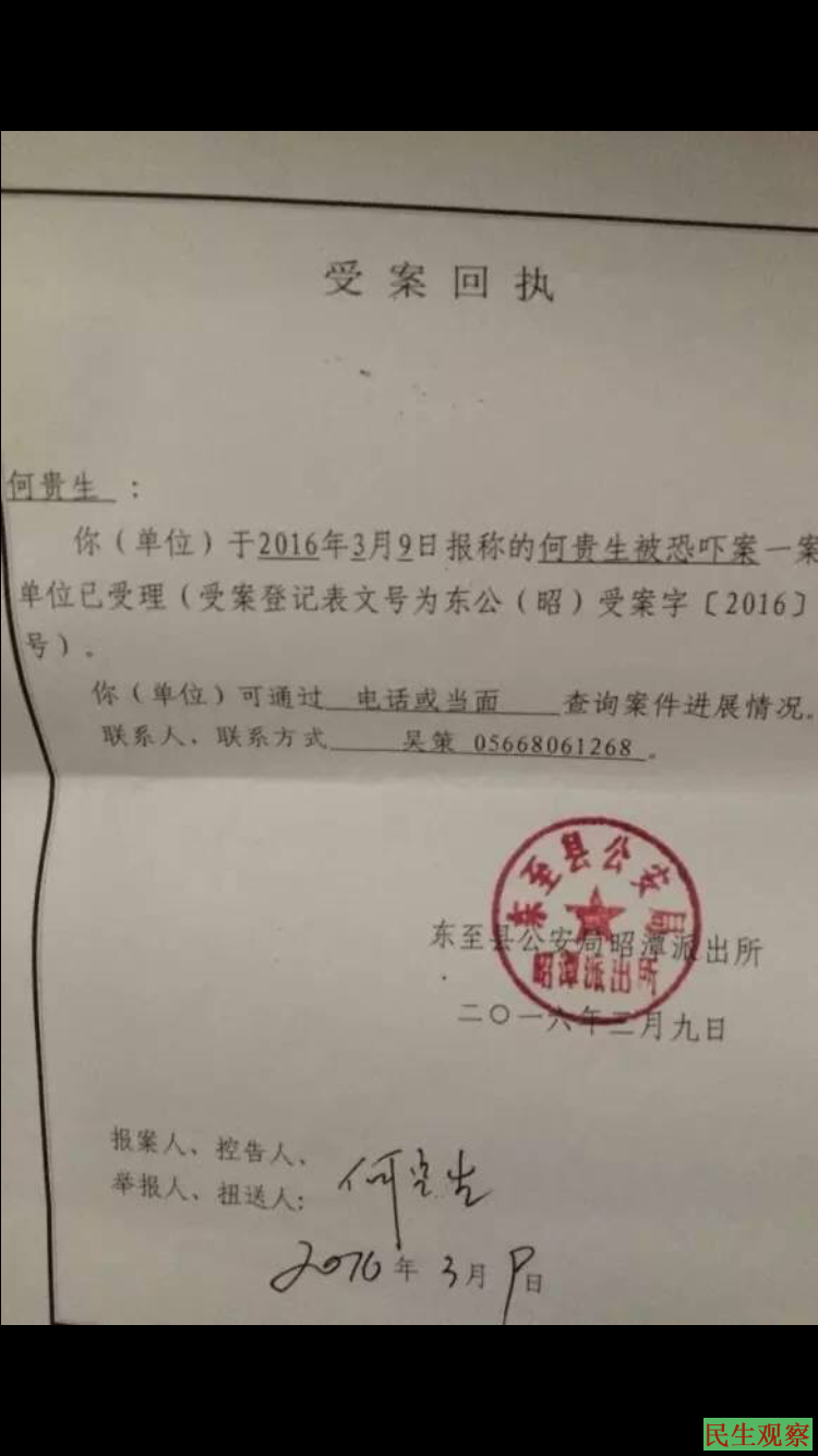 【民生观察2019年8月3日消息】安徽省东至县昭潭镇政府工作人员何贵生历经5年,实名举报东至县昭潭村支书徐慧明涉黑涉恶等贪污腐败问题,至今未果。期间遭到打击报复、威胁恐吓,一度被当地政府无辜开除公职近1年时间,给他和家人造成无法估量的重大损失。但何贵生没有被吓倒,依然坚持投诉举报。