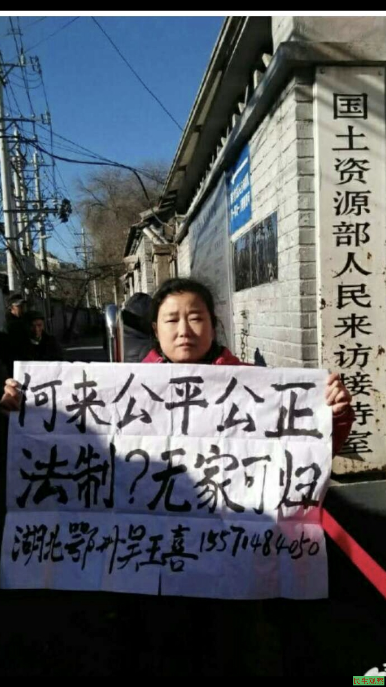 今天(10月15日)再次接吴玉喜打来求救电话,说她已于昨天被地方人员强制押回户籍地。途中押送她的人员对她进行了暴力殴打,致使她遍体鳞伤。昨晚凌晨她从对方手中拿回手机,并就地拨打了110,警方出警后为其做了简单登记便离开,再次拨打报警电话后警察不再出警。
