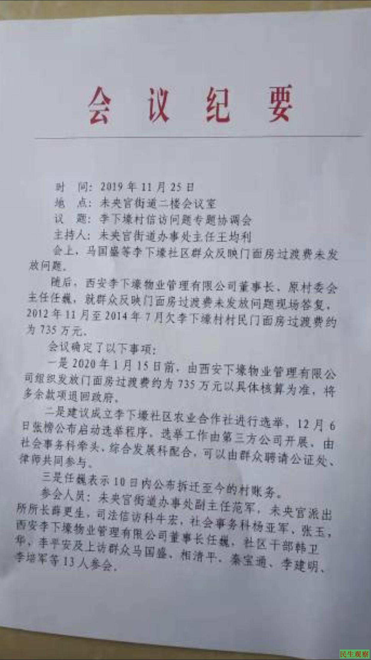 尽管第三条“建议李下壕社区农业合作社进行选举”承诺系全国早就开展的社区工作,但是,随着中央督导组12月2日离开陕西,街道办“12月6日张榜公布启动选举程序”的承诺再一次失信于民。