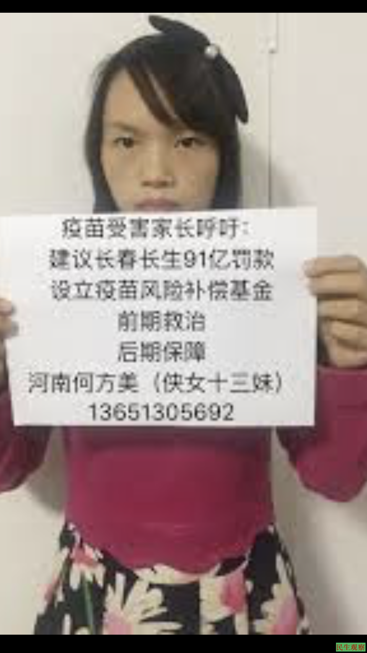 问:这个募捐谁组织的? 答:偶遇的 问:偶遇能偶遇到这么多人? 答:我自己都很意外,也很高兴,感觉找到同病相怜的群体了 问:老实交代,谁组织的?其他家长都说了,你还想狡辩 答:我不认识他们,你让我说什么,谁说的找谁去 问:谁叫某s 答:不认识 问:刚在屋里他们都在叫某s,你怎么会不认识 答:他们叫了你不也没认识吗?我耳朵背,这个你知道的 问:监控到你们疫苗群里刚刚有人在叫某s,你怎么会不认识? 答:都是网络之交,哪会认识。手机都上交了,我又没看到群聊 问:群里谁组织的 答:没人组织,就因为没人组织,所以群里你不也没看见谁组织的证据么 问:没人组织你怎么知道今天有人去募捐 答:群里募捐成常态了,他们经常发以前在王府井募捐现场的老照片 问:谁的照片?啥时候的照片? 答:不认识,群里都说几年前的老照片了 问:这个照片跟你募捐有什么关系 答:我看到照片才知道,原来也可以这样募捐救孩子 问:所以你就来了? 答:嗯 问:继续说 答:我带着孩子来就碰到也有孩子拉着疫苗条幅在募捐,当时心里好激动 问:为什么激动?遇到了你认识的人了是吧? 答:不认识,激动是因为看到疫苗二字了。我没有乞讨经验,一个人乞讨怕丢人,觉得人多不丢人,所以就加入了乞讨队伍 问:这条幅是你的吗? 答:是我的 问:都什么内容? 答:上面写了孩子接种疫苗致残,还贴了接种前后对比照片。 问:多大? 答:不清楚,没有尺寸观念 问:大概说下 答:条幅不是在你面前么,你可以帮忙参考一下 问:哪里打印的? 答:淘宝 问:把你淘宝记录给我看 答:购物记录删了 问:条幅上电话是你的吗? 答:是 问:你举条幅了吗? 答:没有 问:喊口号了吗? 答:没有 问:那你在做什么? 答:我把二岁半的孩子从婴儿车里抱出来,放地上证明孩子不会站,想博取大家同情好救救孩子 问:你的条幅不是拿出来了吗?你不拿谁拿?说说你喊了什么口号? 答:我抱着孩子双手不空,所以条幅被陌生人借去用了,我没喊口号 问:说说他们是谁?都做了什么?喊了什么口号? 答:我耳朵背不知道,也不认识他们,喊没喊什么我不知道 问:你喊了什么口号? 答:我没喊口号,我抱着孩子在那里哭诉求好心人救救孩子 问:你就老实交代吧,交代了只是走程序,我们又不关你,关了你孩子怎么办 答:我说的都是实话!没别的事我干嘛要撒谎 问:你孩子在北京治疗吗? 答:是 问:你北京有家属吗? 答:没有 问:为什么? 答:和孩子爸爸一直感情不和,他从来没有管过孩子,他把我们抛弃了 问:你是故意编造不让他来接孩子是吧 答:不是编造,就算你要他来,他也没在北京 问:他在哪里? 答:我也不知道,他离家出走了,我也离家出走了,各走各的。你那么关心他是想让他把孩子接走好关我吗!孩子都这么可怜了,再弄下去不是更可怜吗! 问:他们都交代了,就你一个人没交代 答:他们交代跟我有什么关系 问:你以前做过什么 答:没有 问:你还不承认 答:真没有 问:给你看看一个东西 答:1级临控:我不知道什么叫1级临控;言论危害:有北京国保找过我,关于网上发了孩子疫苗的事;全国上访人员:我很冤,我没去国家信访局上过访 问:好好想想为什么被列在名单里了 答:我从来不知道我在什么名单里,你应该去问列名单的人,我也想找这个人还我清白 问:好好想想你以前做过什么就被列在名单里 答:带着孩子去过卫生部门信访接待室算吗?这个不犯法吧?我真的好冤! 问:这不就对上了吗!问你半天不主动说,非要等我们拿出东西来了你才说 答:关键我没有做过什么违法的事,也没有被处罚过,所以我更不知道这个名单的事 问:你募捐是为什么?又为什么选在王府井?你不知道北京是不允许募捐的吗? 答:法律上没规定北京不让募捐,所以我不知道这是不允许的。募捐也是着急救孩子,老家政府又不管。听说王府井有钱人多,还能碰到明星,所以我想来碰碰运气 一晚上被不同的人提审了两回,无非就是问谁组织的,我的回答仍然保持以上的观点 笔录里他们人为加了有一条是: 问:是否认识到这种行为并保证不能再犯? 答:认识到了,不会再犯 我就问他们是不是没事了,他们说等下你就可以走了! 途中有来过三拨人,来确认我是否何方美本人。他们自称是其他派出所过来的,说是我们见过。我说我并不认识你。对方说你肯定不认识我,我们在大红门去过你住处找你,当时去了很多人,由我们领导亲自和你在你屋里谈话,我们在门外等着,所以你不认识我不奇怪。 我想了想,说,你撒谎,你不是派出所的,其他派出所的来这干嘛,我又没在你那里募捐。上次来找我的是市公安局国保,如果你上次确实是一起来的,那你是国保,不是派出所的人。再说了那次你们本意要带我走,我不走,然后就在屋里让我手写了一份保证书,保证做到理性发推特。这么说你们今天是来干嘛的?对方说只是来看看我,别想多了。并问我喝不喝水,需要啥了跟提审的人说。 总的来说,北京方面的人态度还可以,很同情,还和我孩子说说话,逗逗乐。 后来折腾到半夜,把我和孩子带到了马家楼接待中心长椅上呆了一晚上,发了馒头和火腿肠。 第二天3月5号中午,被老家10名左右地方人员强行带上特警车,当时把我孩子吓哭了,我要求自己抱孩子,谁也不能碰。说是带孩子去看病,其实哪次不是忽悠回河南新乡辉县。并把手机抢走了。途中有名女子对我孩子不尊重,大眼瞪小眼跟有仇一样,把我孩子吓的弱弱的。见状我也不客气,借机拿出本色跟人普法,他们也好不