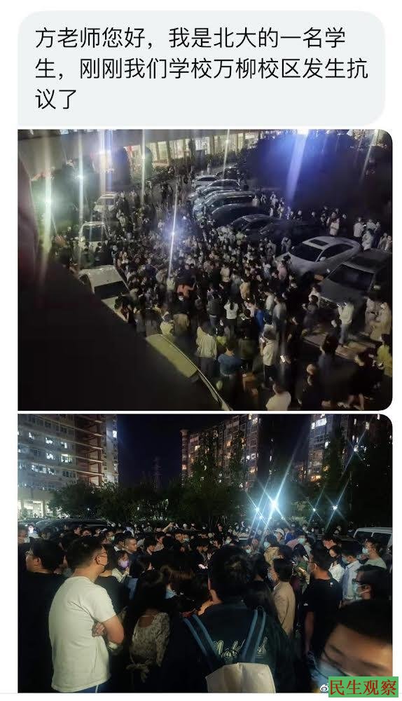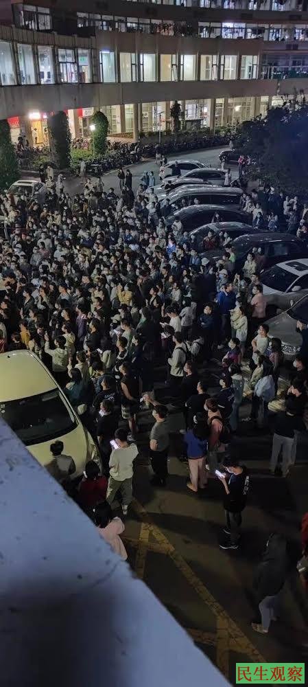 23:00左右,有截图说,各院系学工老师在清查现在没在宿舍的学生,怀疑是否在为日后清算做准备。之后人逐渐散去,仍有一小圈人久久围在楼前似乎在谈着什么。