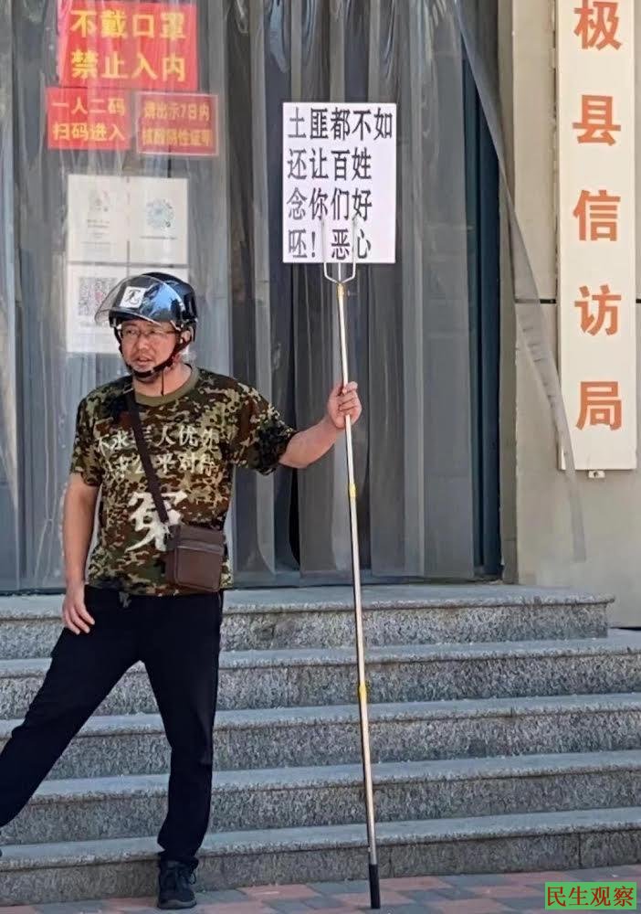 【民生观察2022年7月28日消息】河北省石家庄市退伍军人、诗人王永红为抗议土地被强征,多次到有关部门举牌。2022年7月26日他到当地派出所举牌抗议后,被当地警方行政拘留10天。