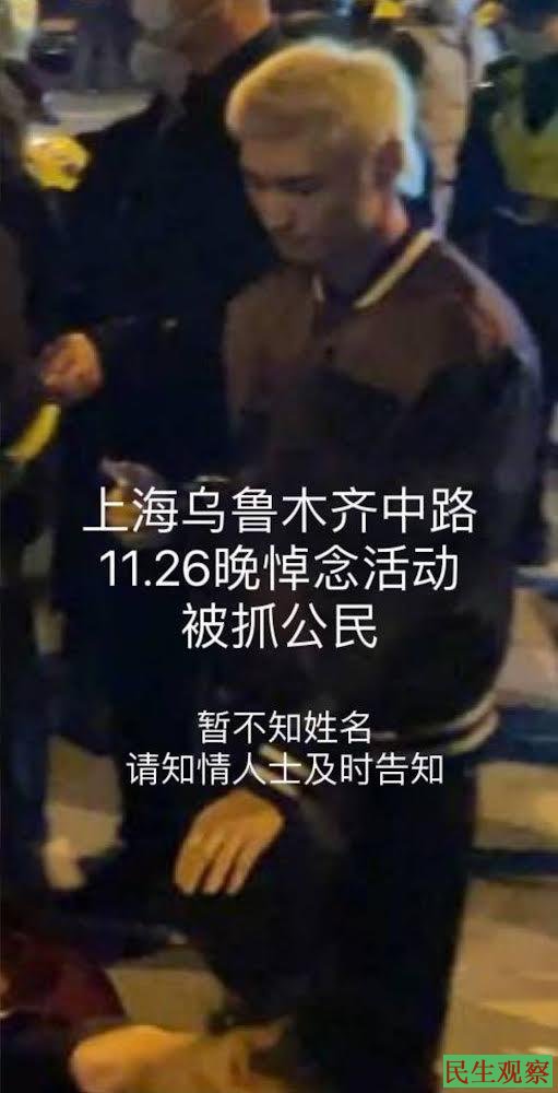 11月26日晚上,上海民众聚集乌鲁木齐中路悼念乌鲁木齐火灾死难者,面对大批警察,民众齐声高喊:“习近平下台”“共产党下台”“要自由”。马路对面的警察并未阻止。随后警察问:这个活动是谁组织的?现场所有人回答:中国人组织的!之后警察开始围堵,民众大声质问警察。据现场网友消息,警察大概抓了两车人。