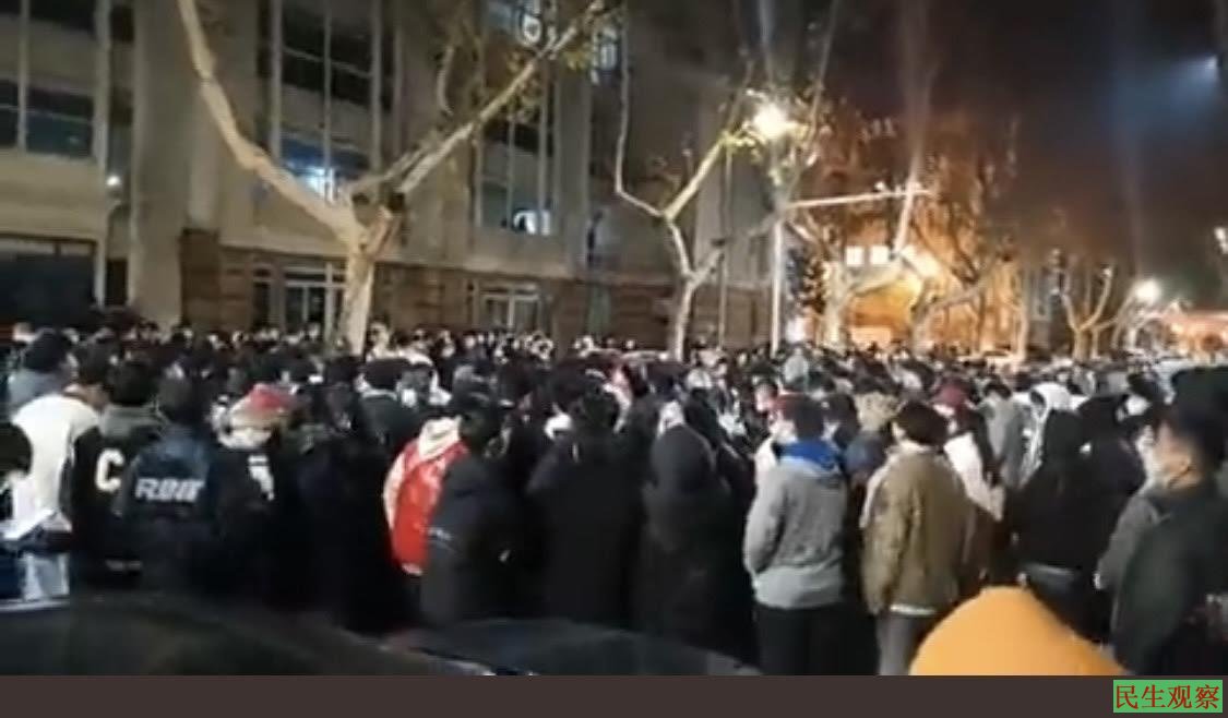 【民生观察2022年12月7日消息】2022年12月5日晚,南京工业大学,由于封校期间发现阳性,学生集会表达不满,要求自愿返乡。