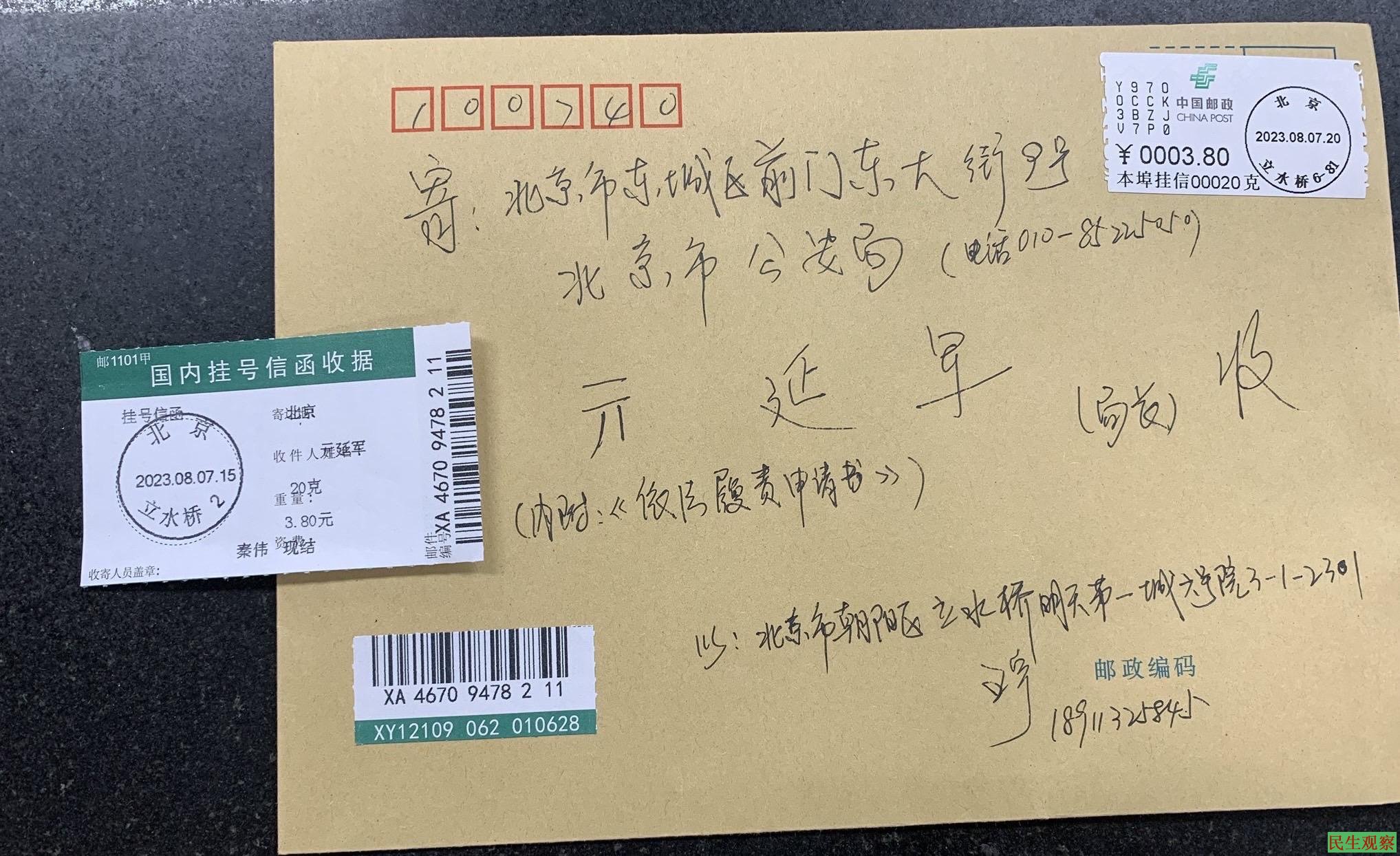 【民生观察2023年8月8日消息】因北京市公安局出入境管理部门及内蒙古自治区兴安盟和乌兰浩特市出入境管理部门,拒绝给王宇办理普通护照,针对此违法行为,王宇向北京市公安局和内蒙古自治区公安厅提起依法履责申请书,并于8月7日邮寄至有管辖权的机关,目前等待法治国家对其依法查处并纠正其违法行为,依法为公民办理护照。
