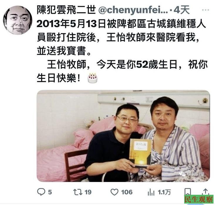 从陈先生2025年3月25号出狱,他发推文被多次强制传唤。4月30日,因转发[民生观察]坦白书等推文被强制传唤2个多小时。
