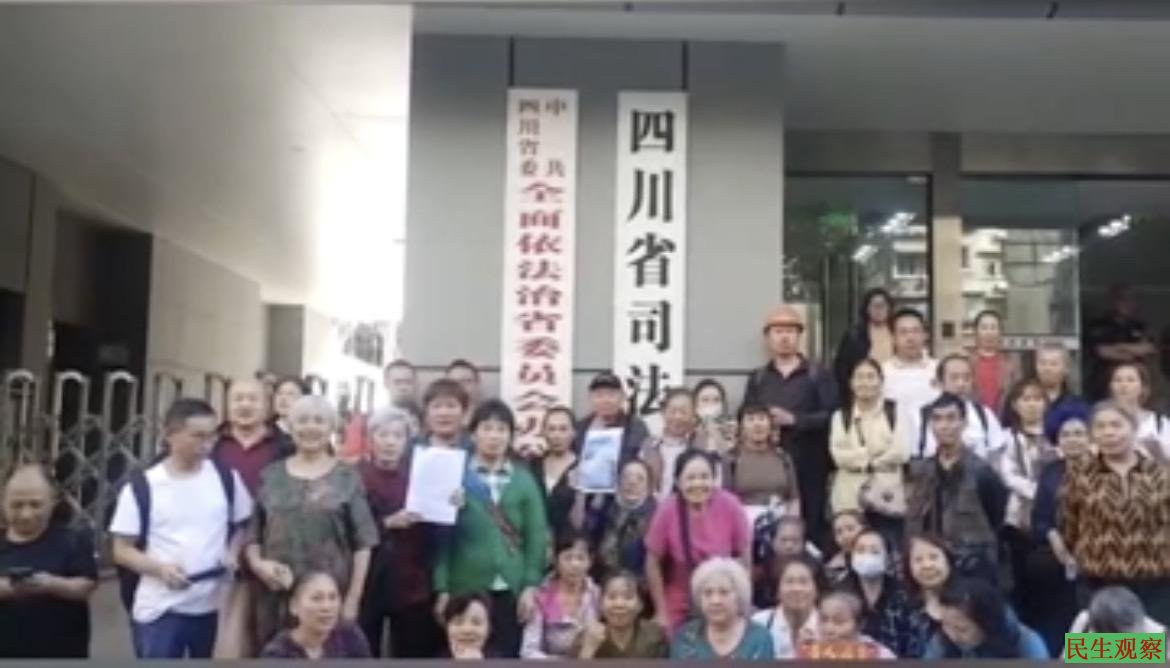 【民生观察2025年10月13日消息】10月13日上午十点之后,来自四川境内二十多年时间、十几个州市县,大约接近百人的规模,因各种原因叠加的维权上访群众,自发自愿的组织起来,集体来到成都市四川省司法厅,暨“全面依法治省委员会办公室”办公驻扎地,要求工作人员出面接待,解答群众疑问、答复群众要求、接受群众材料,并提出要求会见四川省书记王晓晖,或者省长施小琳。