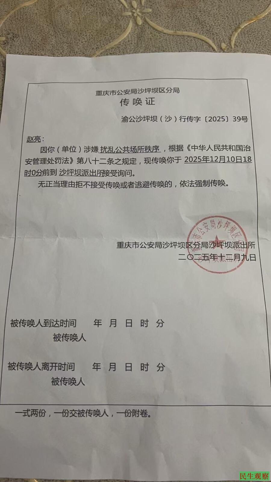 大家好。今天我站在这里,不是为了博取同情,而是为了撕开一张“合法执法”的画皮,让大家看看沙坪坝派出所是如何把法律当儿戏,把公民当违法犯罪分子的!