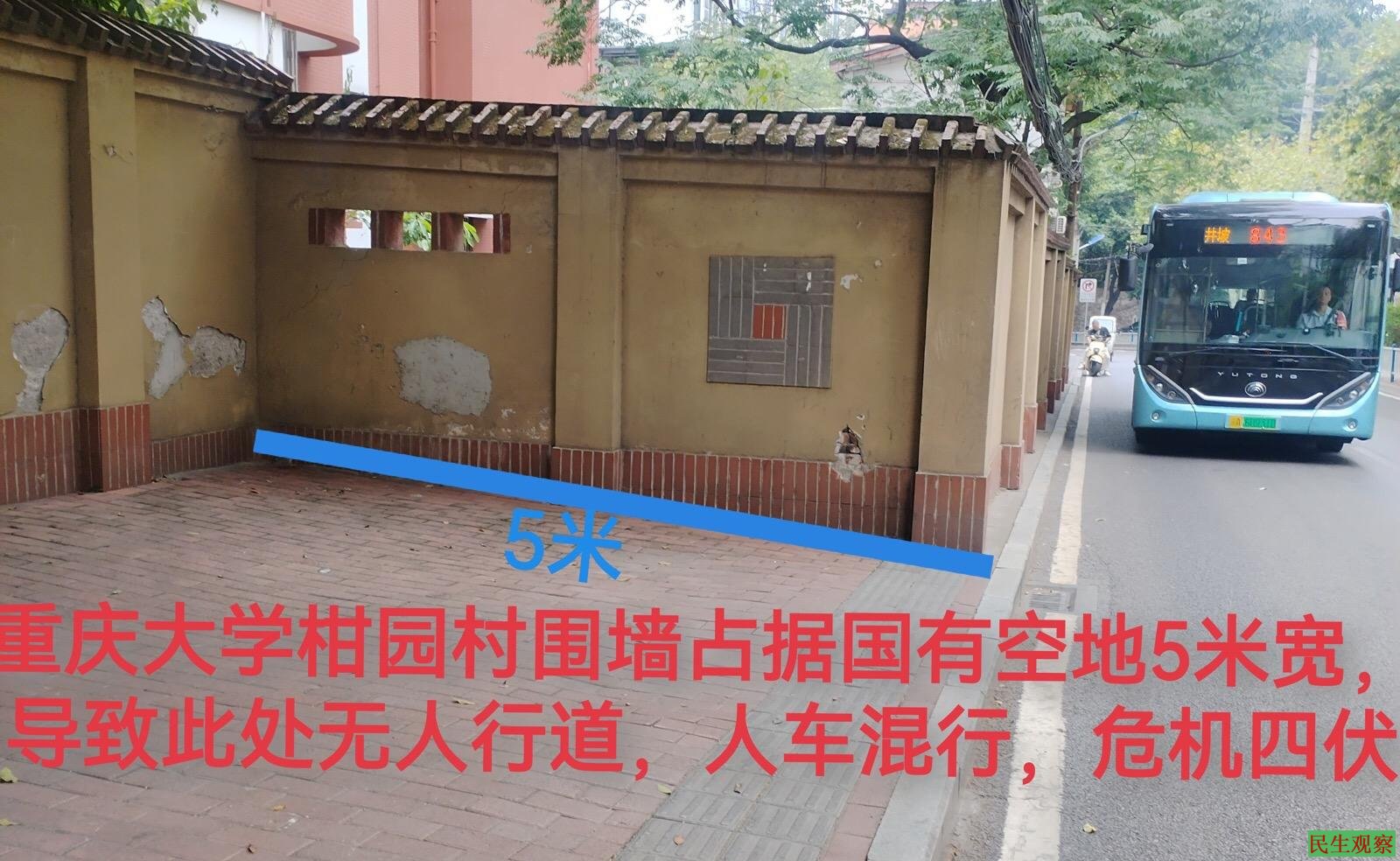 重庆公民因一段围墙占据人行道维权被传唤