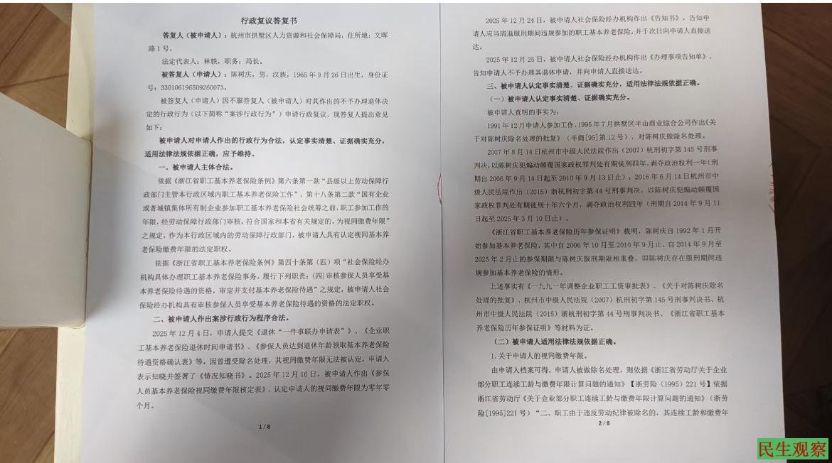 虽然这种“除名”从一定程度也反映了社会法治不健全情况下,公民个体法治意识尤其是维权意识欠缺情况下的弱势。总之,由于申请人对于自己职工权利的无知及所谓“除名”后疏于维权,也由于扣除的视同缴费年限实际只有4个月,所以在本案提出的复议请求按24年4个月的缴费年限办理养老金审定中,并没有包含这4个月的视同缴费期间。既然被申请人在《行政复议答复书》把这个问题提出来了,申请人也不妨做出补充说明并提供足以推翻“除名”事实的证据,在复议程序中如果能够对此问题做出公正解决当然最好,如果不予理会或在形式上继续认同被申请人关于本案“除名”及4个月视同缴费清零的认定,因无关本案大局,申请人愿意采取“对方不再提,我方不再究”的行为立场。