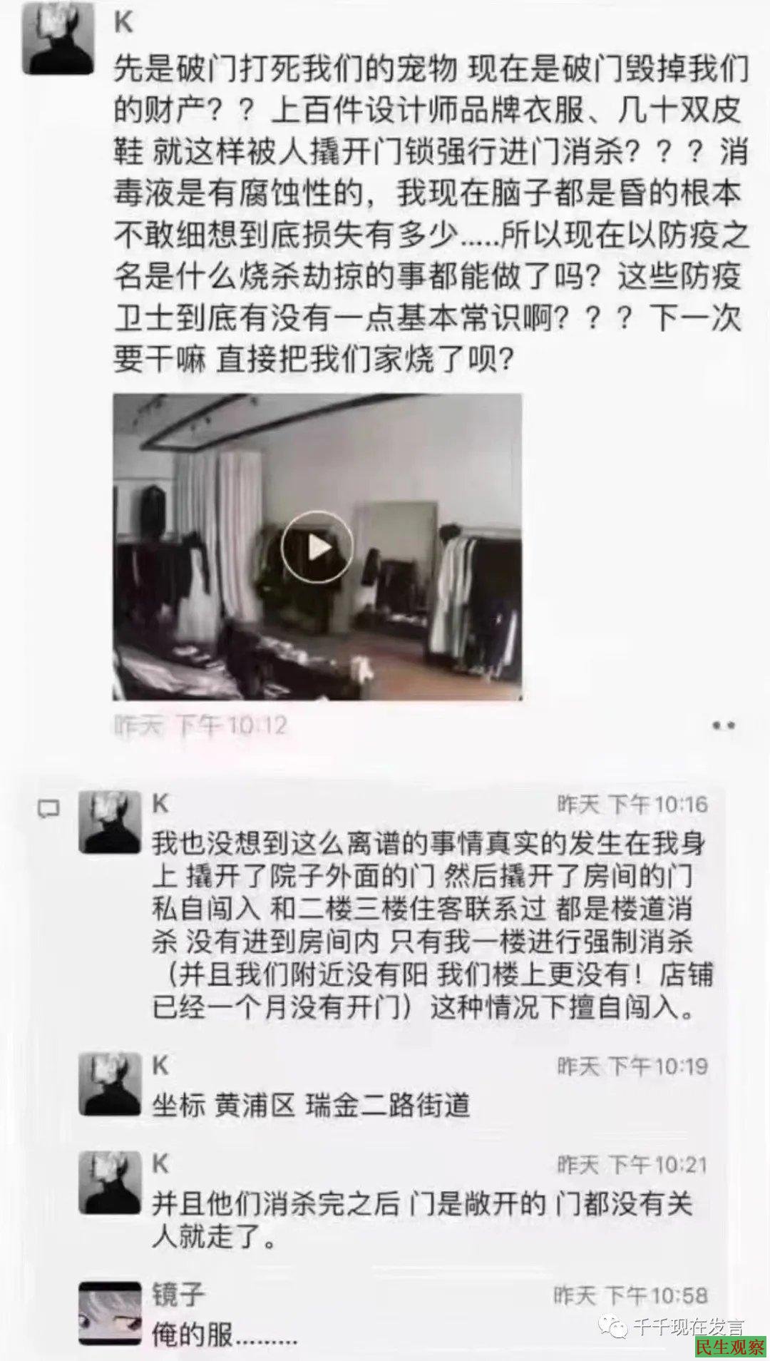 在官方此政治运动式的操作下,上海刚趋缓的防疫管控再度收紧,不但造成各种次生人道灾难,更不断击穿社会道德底线。在正常人心中,屋子,是个人或者家人的最后一块神圣领地,未经允许,任何人不得进入,敢于闯入者,除非强盗,暴徒,总之非法之徒。而在近日上海等地实施的“入户消杀”措施,大白们要屋主交出自家的钥匙,不交出来,大白们如同暴徒一般,破门入户,引起民众人心惶惶,也激起了公众极大愤怒。