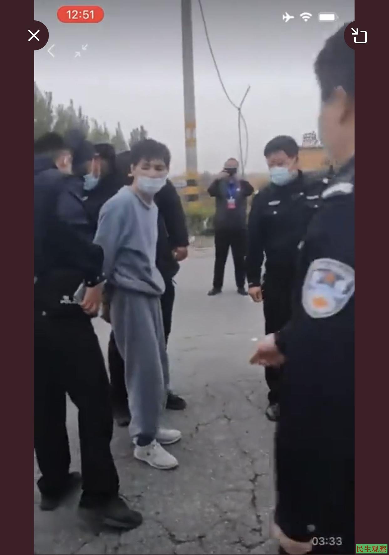文章中描述:十几个特警等待在封控口,又用镣铐锁着他,又命令他将口罩戴好,又用消毒液将他面部和全身喷洒,众人浩浩荡荡离开封控口,这真是震撼人心的逮捕。