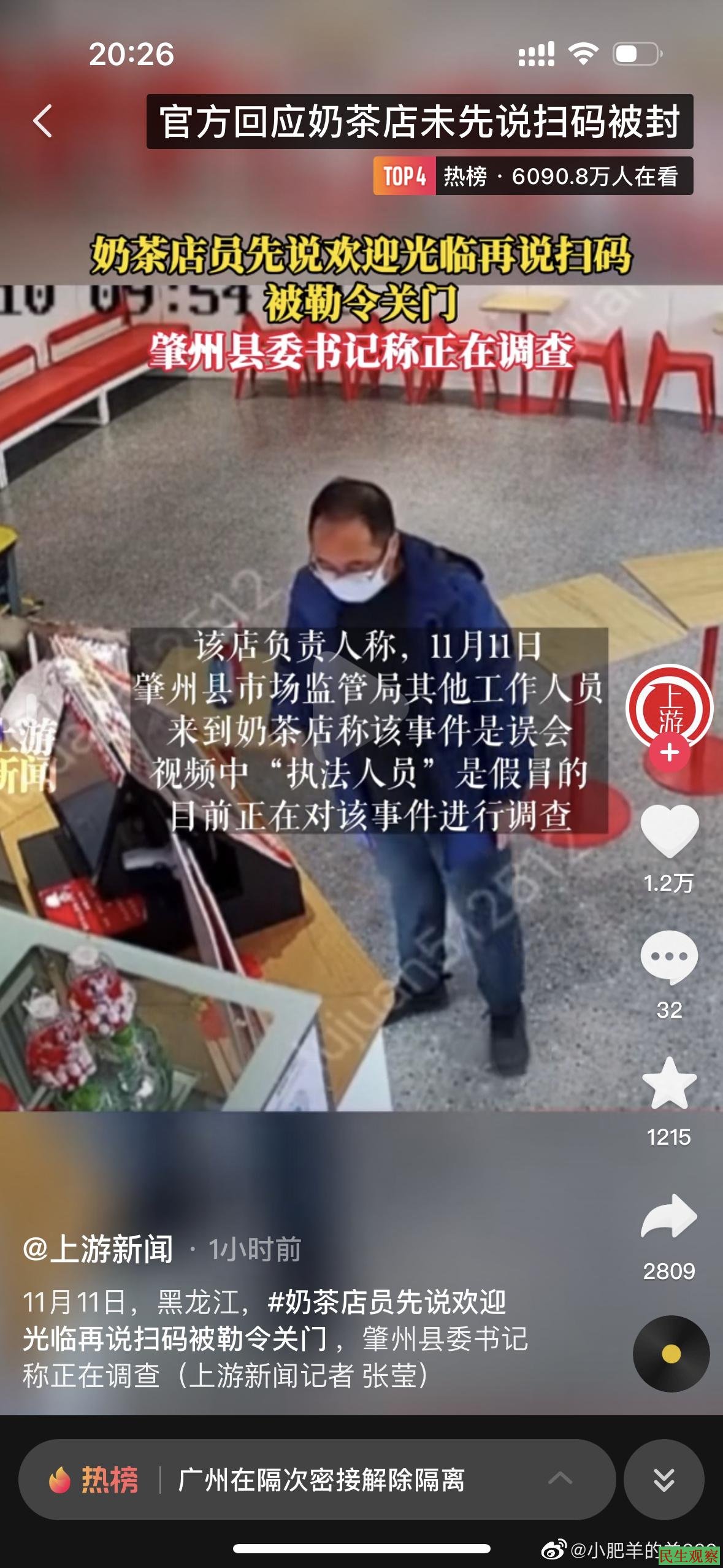 股市刀锋:网传黑龙江一奶茶店,因服务员先说“欢迎光临后,才扫一下码”,被封24小时!理由是没有按照防疫要求,先说“扫码”,执行防疫要求不彻底,被勒令关门。说真的,这个不只是层层加码,这是钓鱼执法+滥用职权,应当严肃追责。不过据说是假冒公职人员,那也必须揪出来,给大家一个说法吧。