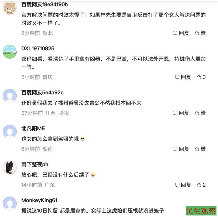 有网民质疑,“攻击他人必须治罪,不能唯后果论,打伤才是犯罪,打不伤就不是犯罪。”博主“猪猪侠”指出,公众普遍认为对涉事女子的处理结果显得草率且难以服众,仿佛是在对公众关切敷衍了事。此外,量刑对比引发不满:一位老人因采集螺蛳被判刑两月,相比之下,女驾驶者违法驾驶、公然辱骂并动手打人却仅获刑十日,如此悬殊的判决让人难以接受,引发了公众对司法公正的质疑。