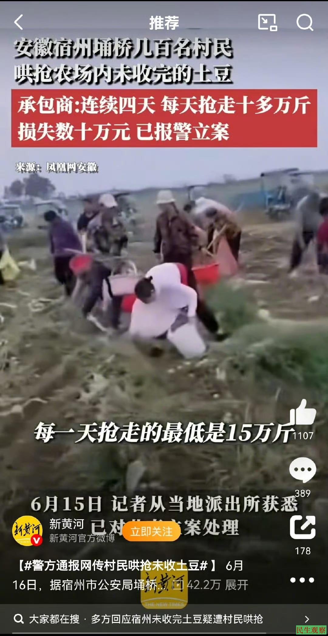 安徽500亩土豆被哄抢民警要求种植户删帖 |