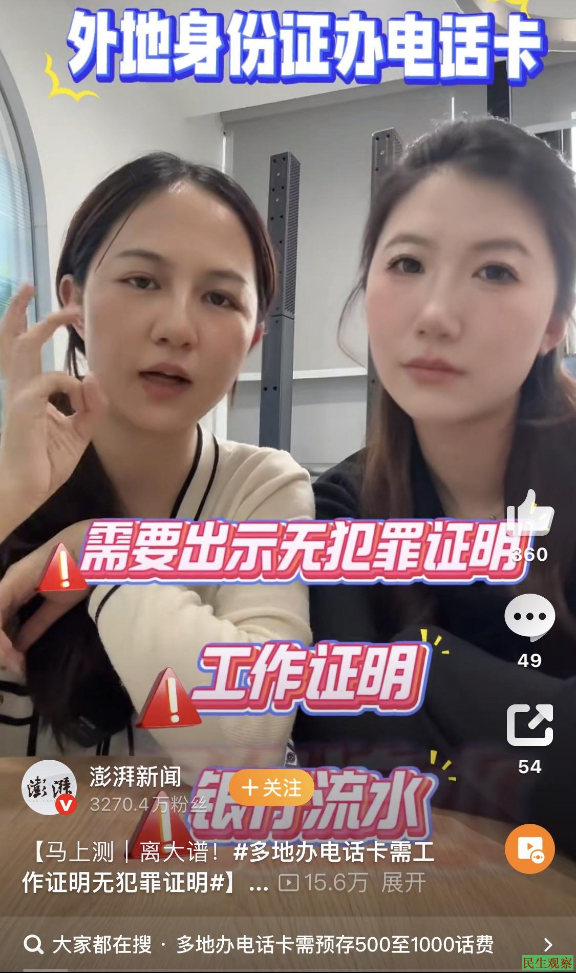 卢旭宁:离大谱!多地办电话卡需工作证明、无犯罪证明、银行流水。
