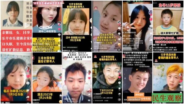 2023年中共国伪国务院总理李强签署《人体器官捐献和移植条例》以来,中共国失踪案例进一步猛涨,2025年活摘杀人失踪案高涨的程度,已经达到普通人肉眼可观可感的程度,以致于中共慌忙于2025年4月1日,关闭中共国唯一一家公布失踪人口的媒体——由国企“惠州金桥网络有限公司”运营的“中国寻亲网”……而有公安系统内部的人透露,2025年前三个季度,中共国光是失踪的青少年数量,就已高达309万!真正前所未有。