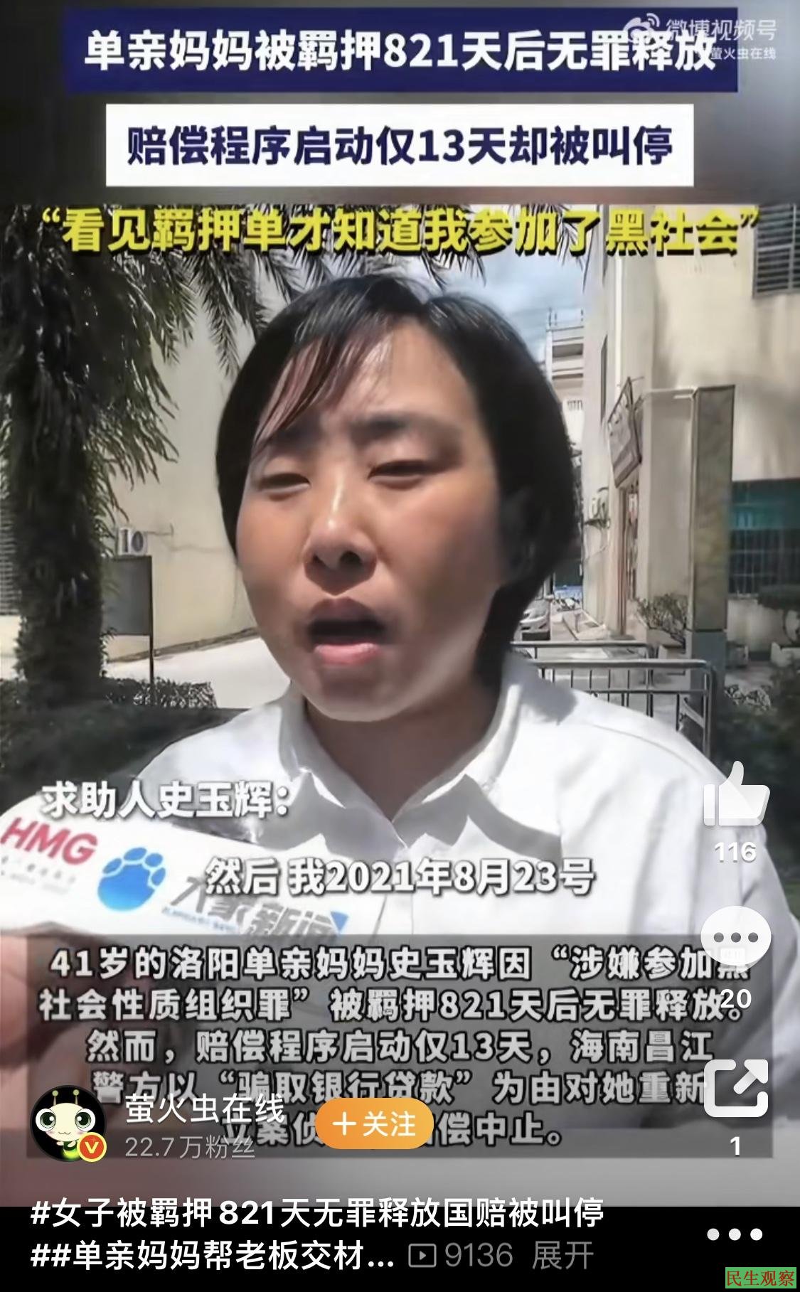 Z-冰y:一个单亲妈妈,没犯事,却被关了821天。最后查无实据,判了无罪,放了出来。好不容易等到国家赔偿,刚启动13天,又被以“骗贷”为由重新立案,赔偿也停了。而这个“骗贷”,法院早就在之前的案子里说过不构成犯罪。有懂的来说说是咋回事?有点看不懂。