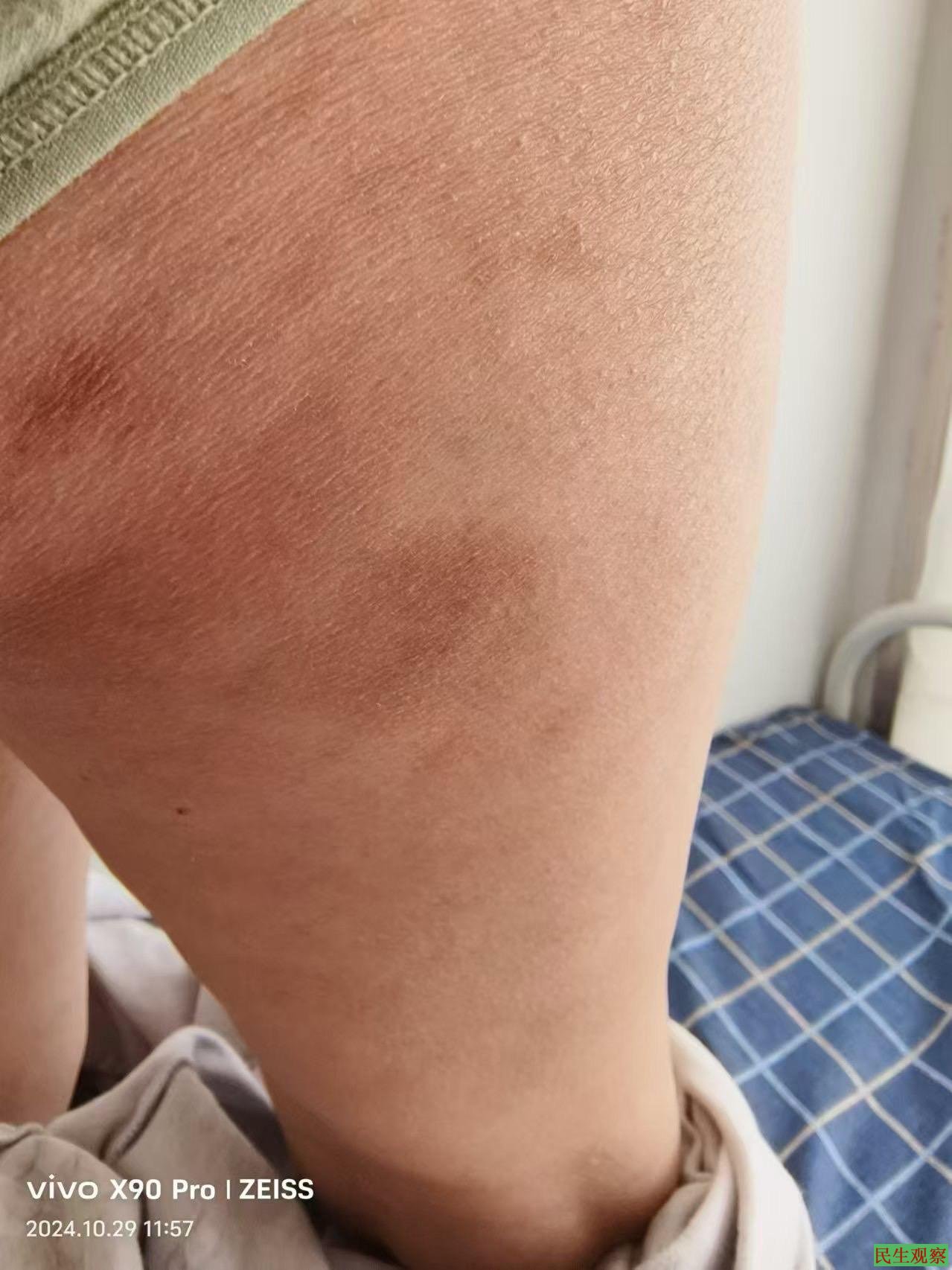 11月10日这天吃完早饭,王影带着苏静到我面前做交班前找我麻烦的工作:她先是向我开骂闲杂,我回怼她;这农村彪妇悍妇立刻怒发冲冠,上前把我打得口鼻流血,然后怒冲冲解开捆我手脚连床架一侧的带子,又怒冲冲使劲拽着依然绑于脚踝的带子,把我从床上拽拖于地上,然后,又把湿漉漉浸满尿液的褥子全蒙在我的脸与身上,王影与苏静两人开始对我从头到脚实施暴力拳打脚踹,在二人对我拳打脚踹同时,其中一人说:监控蒙上了,现在谁打的都看不见。其中一人又把手伸进褥子里撕抓挠我的脸,我口腔上下牙膛,与嘴唇里面上下唇肉、嘴的周围都被撕挠抓破,惨不忍睹,巨痛难忍,令我撕心裂肺般的痛,左脚中趾全然乌黑、1月7日还淤血黢黑,直至2月9日依然是白灰颜色。11月10日这天,我的双侧肋骨因被重踹,痛的不行,双脸遭踹被挠,巨痛不已;嘴的上下外唇周围肿胀老高。接班的贾护工看到我第一眼被吓一跳,说:“怎么打这么狠!”刘雨竹站我床边向贾护工说:“她们打之前,把监控套上了黑塑料袋”。