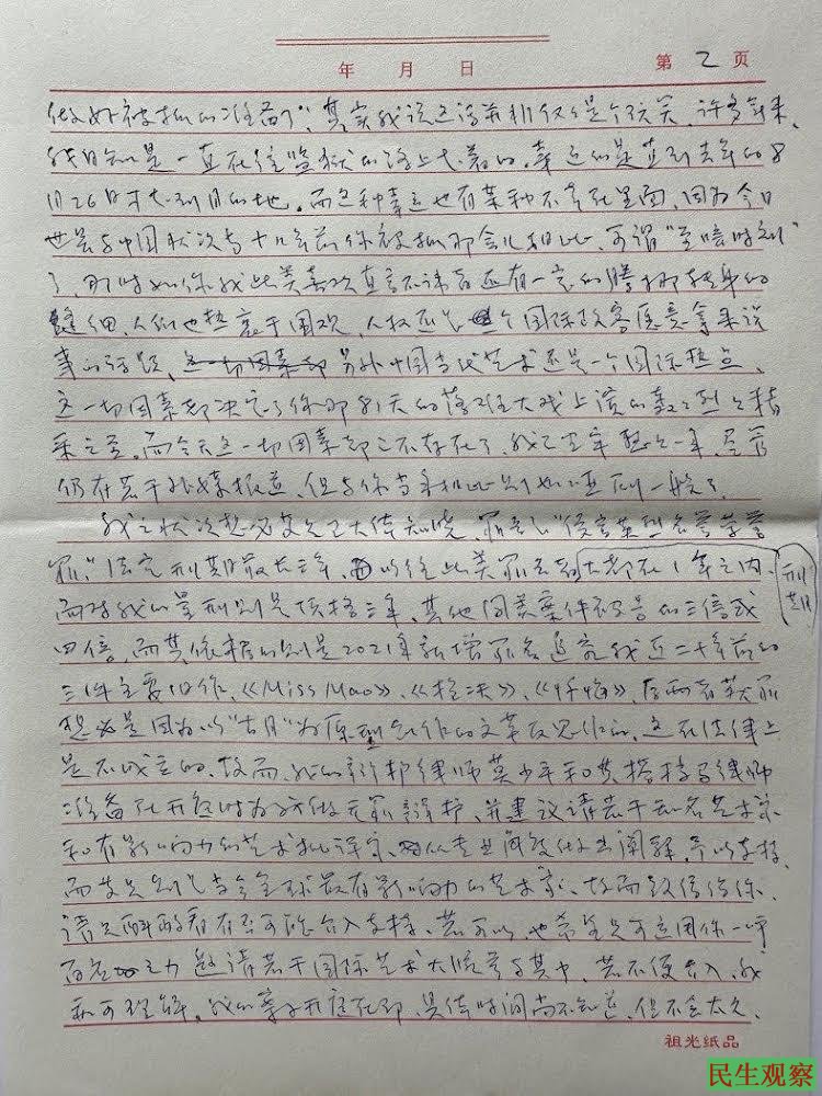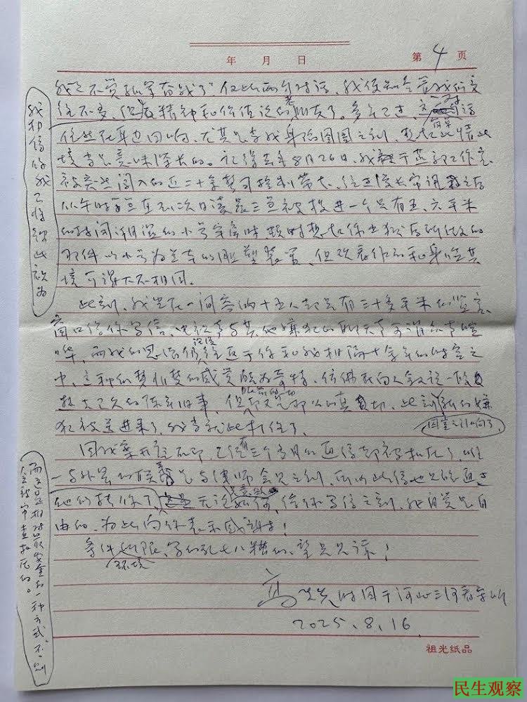 【民生观察2025年8月29日消息】2025年8月16日,中国著名艺术家高兟在河北三河看守所写下一封求救信,寄给老友艾未未。2024年8月26日,旅美艺术家高兟回国探亲时被捕,罪名为“侵害英雄烈士名誉荣誉罪”,面临三年刑期,比同类案件重得多。依据的是他近二十年前涉嫌影射毛泽东的旧作——《Miss Mao》《枪决》《忏悔》等。高兟在信中坦言,这些作品本是反思历史的艺术表达,却成了罪证。律师团队将做无罪辩护,并希望艾未未及国际艺术界能声援。他写道:艾未未曾说过:“我今天安全,并不意味着明天安全。”当艺术自由被权力打压,没有不被定罪的创作,只有尚未被定罪的创作。