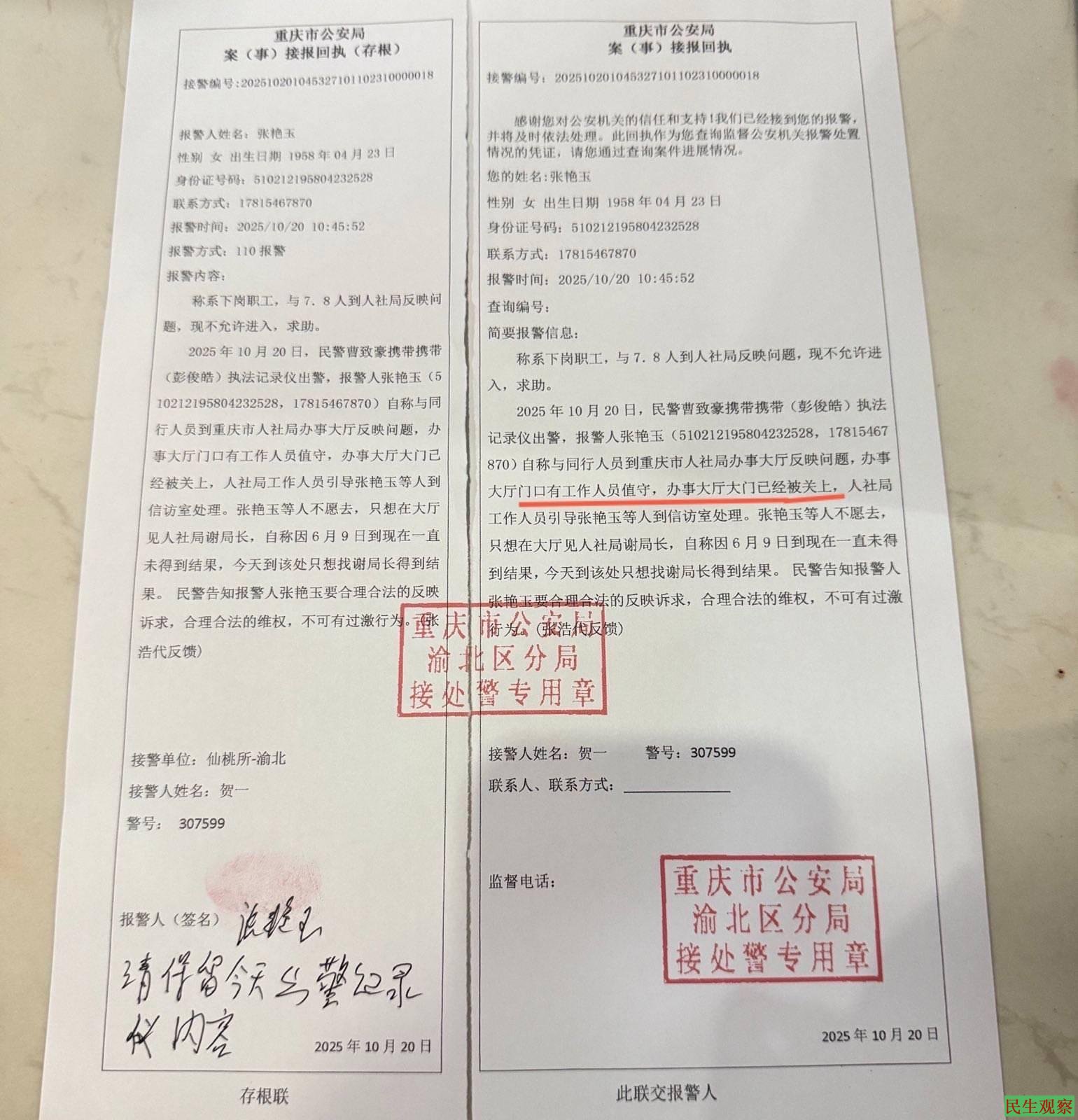 今天我们怀着对社保权益的迫切诉求,再次前往重庆市人力资源与社会保障局。然而,当工作人员见到我们时,竟直接关闭大门,拒绝接待,甚至导致我们不得不报警求助。这不是服务群众的举措,而是对“为人民服务”根本宗旨的彻底背叛。